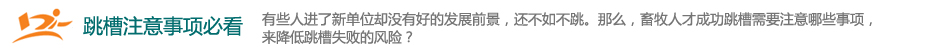臨近年關,挖角、加薪、跳槽、簽約新東家……俗話說:人在職場走,哪能不跳槽。跳槽是一門學問,也是一種策略。當你準備跳槽時,如何才能順利地完成跳槽,從而取得職業(yè)的成功呢?本期職場話題,中國畜牧獸醫(yī)專業(yè)人才網(wǎng)指導你如何“走”好“人往高處走”?