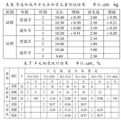 (3)育成和成年羊毛長(zhǎng)和剪毛量測(cè)試結(jié)果見表6。