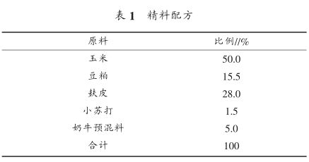 試驗(yàn)地點(diǎn)選在黃陂順華肉牛養(yǎng)殖專業(yè)合作社,試驗(yàn)從2014年7月18日開始至9月3日結(jié)束,空腹稱重,記錄開始體重、結(jié)束體重及飼料采食量。