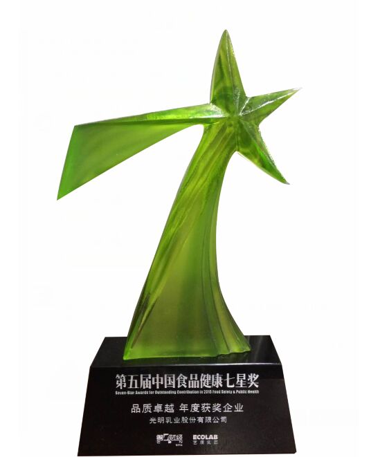 有中國食品界最高榮譽(yù),東方「黑珍珠獎(jiǎng)」之稱的“中國食品健康七星獎(jiǎng)”秉承公正而嚴(yán)謹(jǐn)?shù)脑u選流程,依托專業(yè)、客觀和權(quán)威的評價(jià)方法,集合政府、行業(yè)專家、媒體及公眾等多方力量,對各參選企業(yè)進(jìn)行嚴(yán)格篩選和全面評估,并經(jīng)評審委員會(huì)專家終審,最終光明乳業(yè)股份有限公司榮膺“品質(zhì)卓越”獎(jiǎng)項(xiàng)殊榮。