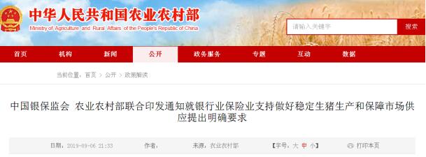 中國銀保監(jiān)會辦公廳 農(nóng)業(yè)農(nóng)村部辦公廳關(guān)于支持做好穩(wěn)定生豬生產(chǎn)保障市場供應(yīng)有關(guān)工作的通知