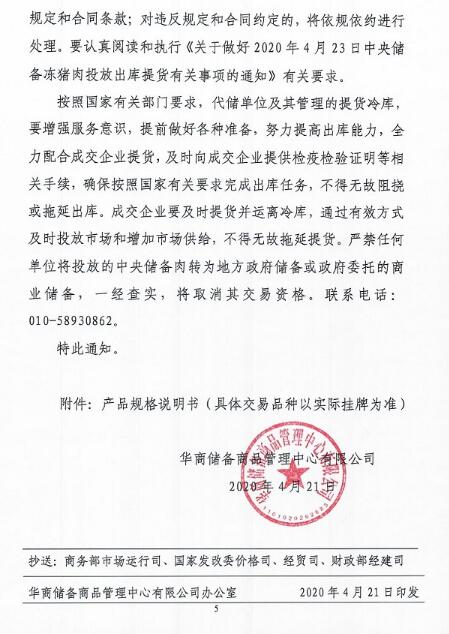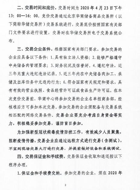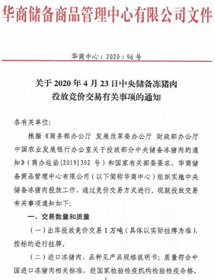 華儲網(wǎng)4月21日發(fā)布中央儲備凍豬肉投放競價交易有關(guān)事項的通知,將競價交易1萬噸,交易時間為2020年4月23日下午13時至16時,這是今年以來第16批投放的中央儲備凍豬肉,累計投放量將達31萬噸。