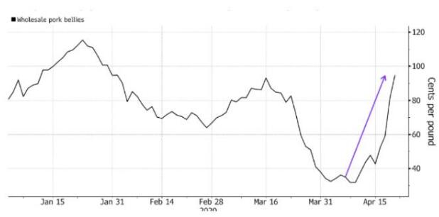 肉類加工廠的關(guān)閉使得全美生豬供應(yīng)嚴(yán)重過剩,生豬價(jià)格暴跌。