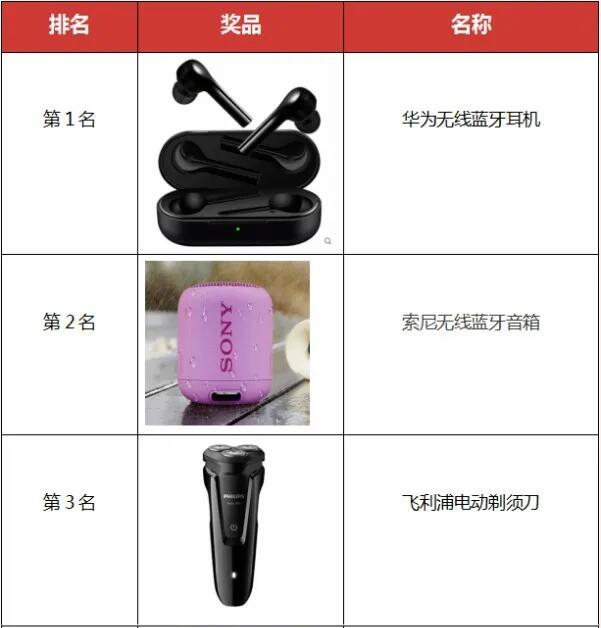 第2名:可獲得價值300元的索尼無線藍牙音箱一臺;