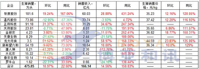 截止8月17日,12家上市企業(yè)2020年7月份生豬銷(xiāo)量已公布,7月份12大上市企業(yè)生豬銷(xiāo)量475.85萬(wàn)頭,環(huán)比增加10.97%,同比增加22.6%,銷(xiāo)售收入166.14億元,環(huán)比增加14.56%,同比增加150.8%。生豬銷(xiāo)量來(lái)看,12家上市企業(yè)生豬銷(xiāo)量同環(huán)比分化,溫氏股份、天邦股份、天康生物、大北農(nóng)、羅牛山出欄量環(huán)比不同程度下降,其他7家環(huán)比均增加,僅有溫氏股份、大北農(nóng)同比下降,其他10家同比均增長(zhǎng);受?chē)?guó)內(nèi)生豬供給偏緊,生豬市場(chǎng)價(jià)格同比大幅上漲,生豬銷(xiāo)售收入大幅增長(zhǎng)。