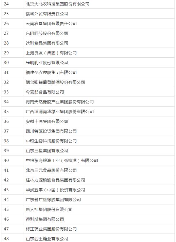 全國(guó)農(nóng)產(chǎn)品加工業(yè)100強(qiáng)企業(yè)名單