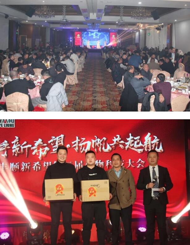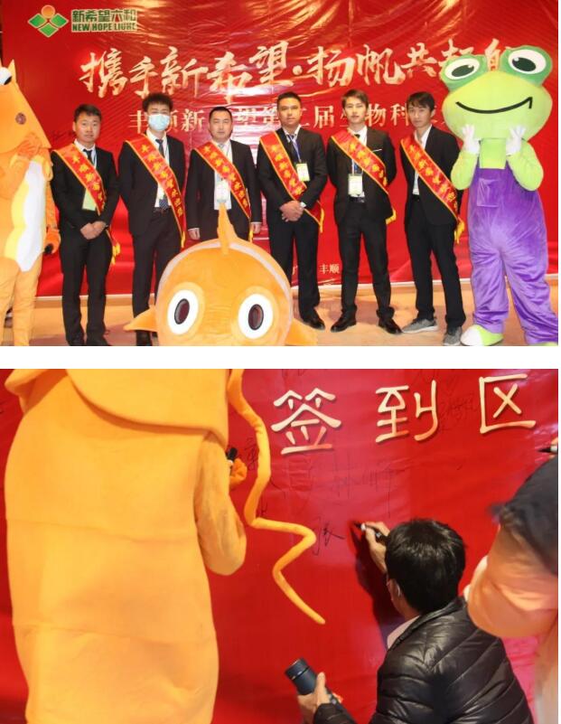 新希望六和廣東新區(qū)資深配方師周良星博士、成都楓瀾科技有限公司何海權(quán)先生、豐順新希望生物科技有限公司總經(jīng)理何建民先生、豐順新希望生物科技有限公司內(nèi)務(wù)總經(jīng)理任冬梅女士、豐順新希望生物科技有限公司財務(wù)經(jīng)理黃衛(wèi)彬先生、豐順新希望生物科技有限公司采經(jīng)理吳兆武先生、廣東立訊營楽科技有限公司劉劍金先生、廣東立訊營楽科技有限公司蔡慧超先生、汕頭市煉鋒魚粉有限公司林洽希先生、梅州市華崗實業(yè)有限公司韓志剛董事長等嘉賓出席會議現(xiàn)場。據(jù)了解,本次科技大會面向優(yōu)秀的經(jīng)銷商和規(guī)模養(yǎng)殖戶,豐順新希望以耕者謀利、為食者造福,打造生物飼料第一品牌為愿景,尋求結(jié)合志同道合的合作伙伴,吸引與會人數(shù)超300人。