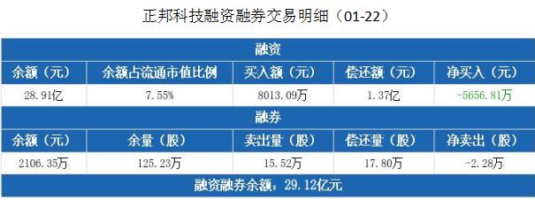 正邦科技融資融券信息顯示,2021年1月22日融資凈償還5656.81萬元;融資余額28.91億元,較前一日下降1.92%。