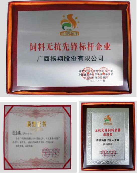 揚(yáng)翔公司獲評(píng)“飼料無(wú)抗先鋒標(biāo)桿企業(yè)”