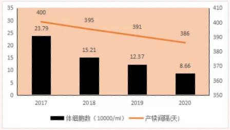 2020年良種場成母牛更新率23.5%,正是因為有了良好的健康度,才能帶來較低的更新率。