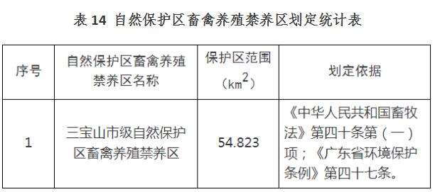 根據(jù)《關于同意建立新興三寶山市級自然保護區(qū)的批復》(云府函〔2006〕71號)和新興三寶山市級自然保護區(qū)邊界矢量圖,新興三寶山市級自然保護區(qū)尚未劃定核心區(qū)、緩沖區(qū)等生態(tài)功能區(qū)劃,因此本次將新興三寶山市級自然保護區(qū)全區(qū)劃分為自然保護區(qū)畜禽養(yǎng)殖禁養(yǎng)區(qū),因新興三寶山市級自然保護區(qū)右片區(qū)部分區(qū)域超出新興縣行政區(qū)劃范圍,超出新興縣行政區(qū)劃范圍部分不列入新興縣自然保護區(qū)。經(jīng)分割,新興縣境內(nèi)三寶山市級自然保護區(qū)畜禽養(yǎng)殖禁養(yǎng)區(qū)面積為54.823km2,其中大江鎮(zhèn)境內(nèi)為36.961km2,里洞鎮(zhèn)境內(nèi)為17.862km2。