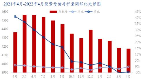 據(jù)Mysteel農(nóng)產(chǎn)品123家定點樣本企業(yè)數(shù)據(jù)統(tǒng)計,4月能繁母豬存欄量為454.59萬頭,環(huán)比減少0.97%,同比減少12.34%。4月能繁母豬去化繼續(xù)放緩,其中規(guī)模場存欄量變化有限,保持正常補欄、淘汰節(jié)奏,而小散淘汰量仍較多。目前市場對5月后行情仍較好,母豬價格亦持續(xù)走高,同時豬價連日上漲后,養(yǎng)戶大幅虧損局面得到良好緩解,故小散產(chǎn)能去化節(jié)奏或轉(zhuǎn)為補欄,規(guī)模場亦多有商轉(zhuǎn)母、補欄操作,預(yù)計5-6月能繁母豬存欄或環(huán)比轉(zhuǎn)正。故從Mysteel農(nóng)產(chǎn)品數(shù)據(jù)來看,目前生豬產(chǎn)能亦處在周期尾聲,后期生豬供給將逐步減少,因此后期飼料下游需求或?qū)⒊掷m(xù)走弱。