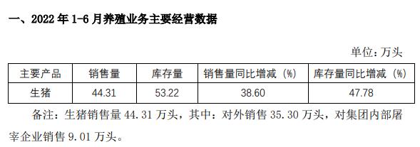 神農(nóng)集團7月9日公布2022年1-6月養(yǎng)殖業(yè)務(wù)主要經(jīng)營數(shù)據(jù):1-6月生豬銷售量44.31萬頭,同比增長38.6%;生豬庫存量同比增47.78%。
