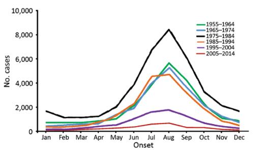 2.疫情多發(fā)生在6~9月,雨水多、洪水泛濫、吸血昆蟲多的季節(jié)。