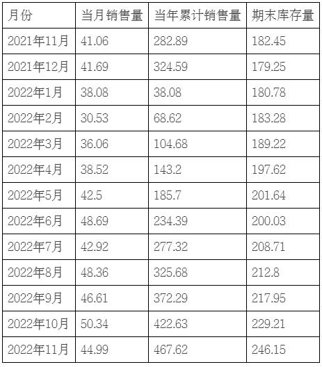 2022年1-11月,公司累計(jì)銷售生豬467.62萬(wàn)頭,銷售量同比增長(zhǎng)65.30%。