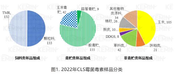由此可見,飼料類樣品、一般青貯和玉米是反芻生產(chǎn)中三類應(yīng)用最廣泛的原料,在此建明CLS著重對以上樣品的霉菌毒素污染情況進(jìn)行統(tǒng)計分析。
