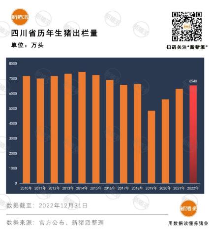 2022年,四川省生豬出欄量達(dá)到6548.4萬頭,超額完成《川豬產(chǎn)業(yè)振興工作推進(jìn)方案》設(shè)定的6500萬頭目標(biāo)。2019年至2021年,四川的生豬出欄量分別為4852.6萬頭、5614.4萬頭和6314.8萬頭,生豬產(chǎn)能持續(xù)增長,助力豬肉供給穩(wěn)步提升。