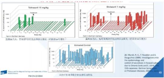 此外,極個(gè)別牧場(chǎng)在混群后1-2月都不會(huì)發(fā)生球蟲(chóng)感染,卵囊分化成一代、兩代、甚至三代,牛排泄出的糞便污染環(huán)境,過(guò)量的球蟲(chóng)卵囊被牛食入,導(dǎo)致5-6個(gè)月后出現(xiàn)臨床癥狀,這種情況建議延后使用百球清。