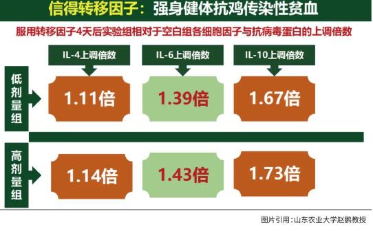 拋開抑制病毒感染而言,信得轉(zhuǎn)移因子對生長性能也有促進作用。實驗中我們發(fā)現(xiàn),使用了高劑量信得轉(zhuǎn)移因子的實驗組雞群,即便有傳貧感染體重仍然能夠接近正常SPF雞的水平。