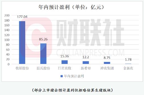 據(jù)此類推,巨星農(nóng)牧(603477.SH)、神農(nóng)集團(605296.SH)、新希望(000876.SZ)、金新農(nóng)(002548.SZ)和溫氏股份等今年或有望分別盈利不低于15億元、8億元、12億元、1億元和85億元。