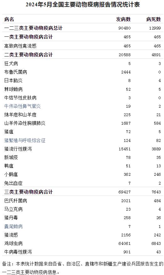二類主要動物疫病15種,發(fā)病動物2.0588萬頭/羽/只/匹,病死動物4891頭/羽/只/匹,報告發(fā)病數(shù)占前3位的病種依次為豬流行性腹瀉、布魯氏菌病、山羊傳染性胸膜肺炎,占二類主要動物疫病報告發(fā)病總數(shù)的95.11%。