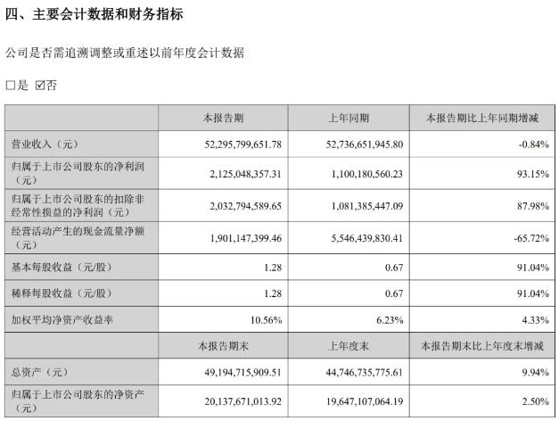 報告期內(nèi),公司實現(xiàn)營業(yè)收入522.96億元,同比微降0.84%,主要是由于飼料大宗原材料農(nóng)產(chǎn)品價格下跌,導(dǎo)致飼料產(chǎn)品單價跟隨下調(diào)、營業(yè)收入微降;實現(xiàn)歸屬于上市公司股東的凈利潤21.25億元,同比增長93.15%,主要是由于飼料主業(yè)市場份額和盈利均得到較好增長,同時養(yǎng)殖業(yè)務(wù)扭虧為盈。