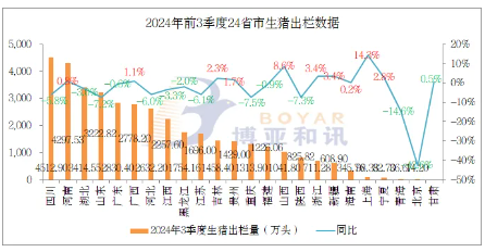 3、河北:2024年前三季度出欄2632.2萬頭,下降6.0%