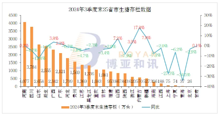 近期,各省市陸續(xù)公布了2024年前三季度生豬產(chǎn)能情況,博亞和訊整理已公布的各省生豬產(chǎn)能數(shù)據(jù)。
